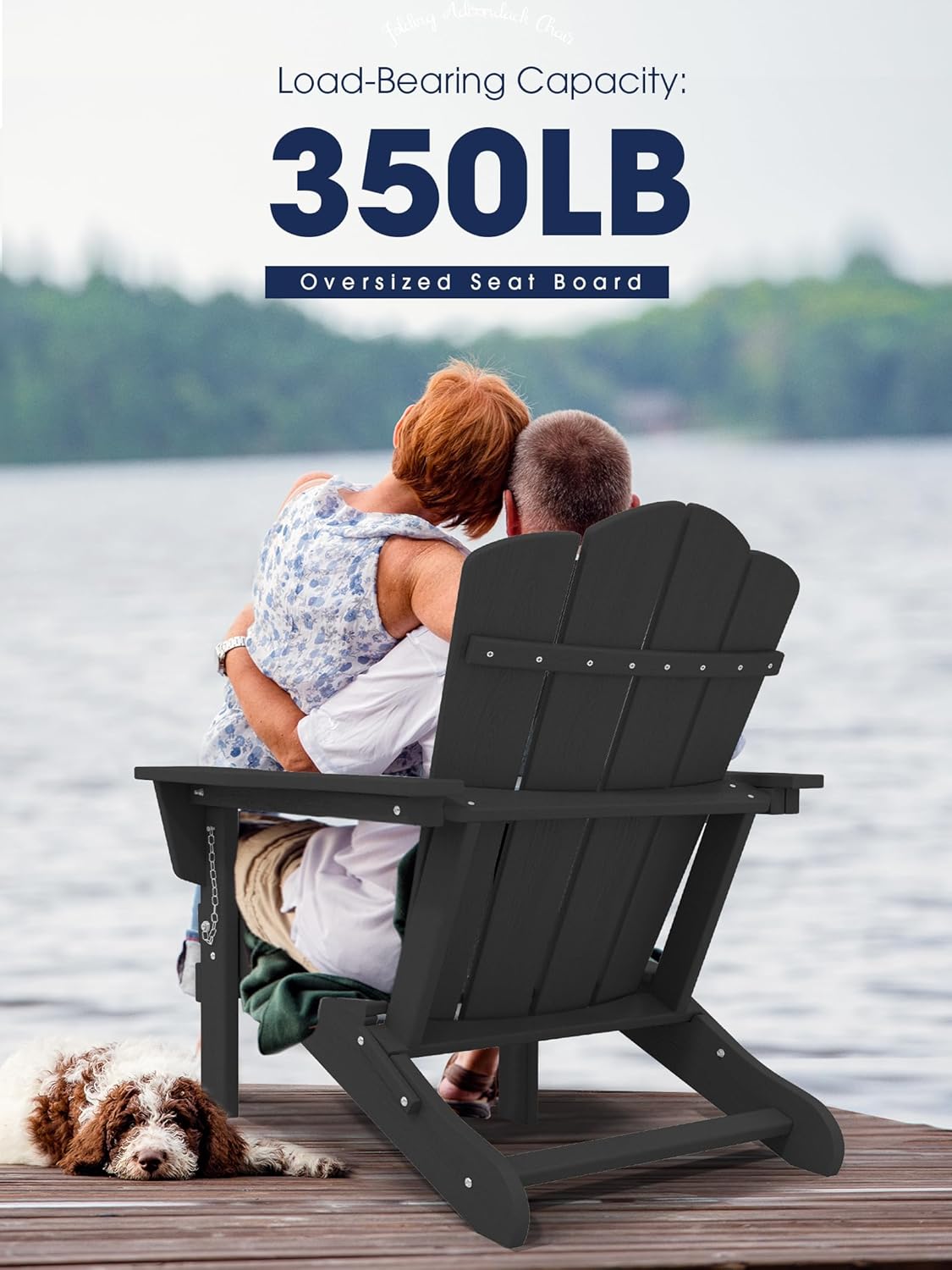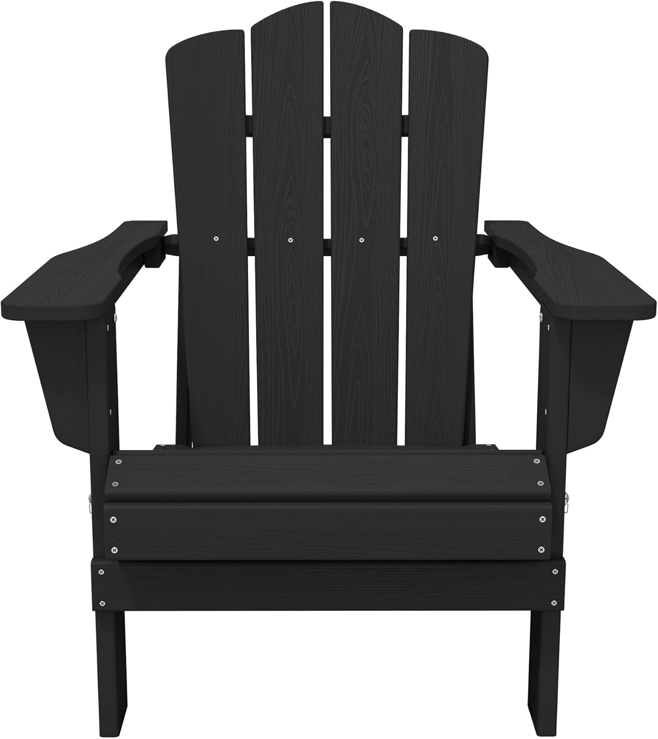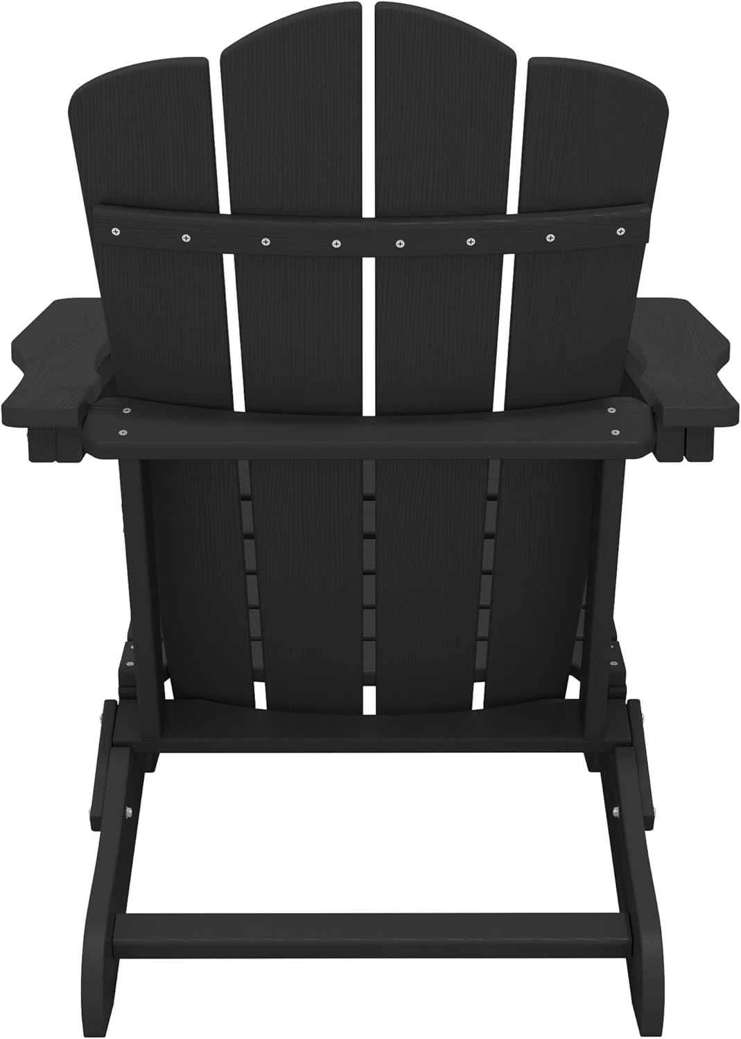 KINGYES Folding Adirondack Chair, HDPE All-Weather Folding Adirondack Chairs, Outdoor Patio Adirondack Chair for Deck Lawn fire Pit, Black