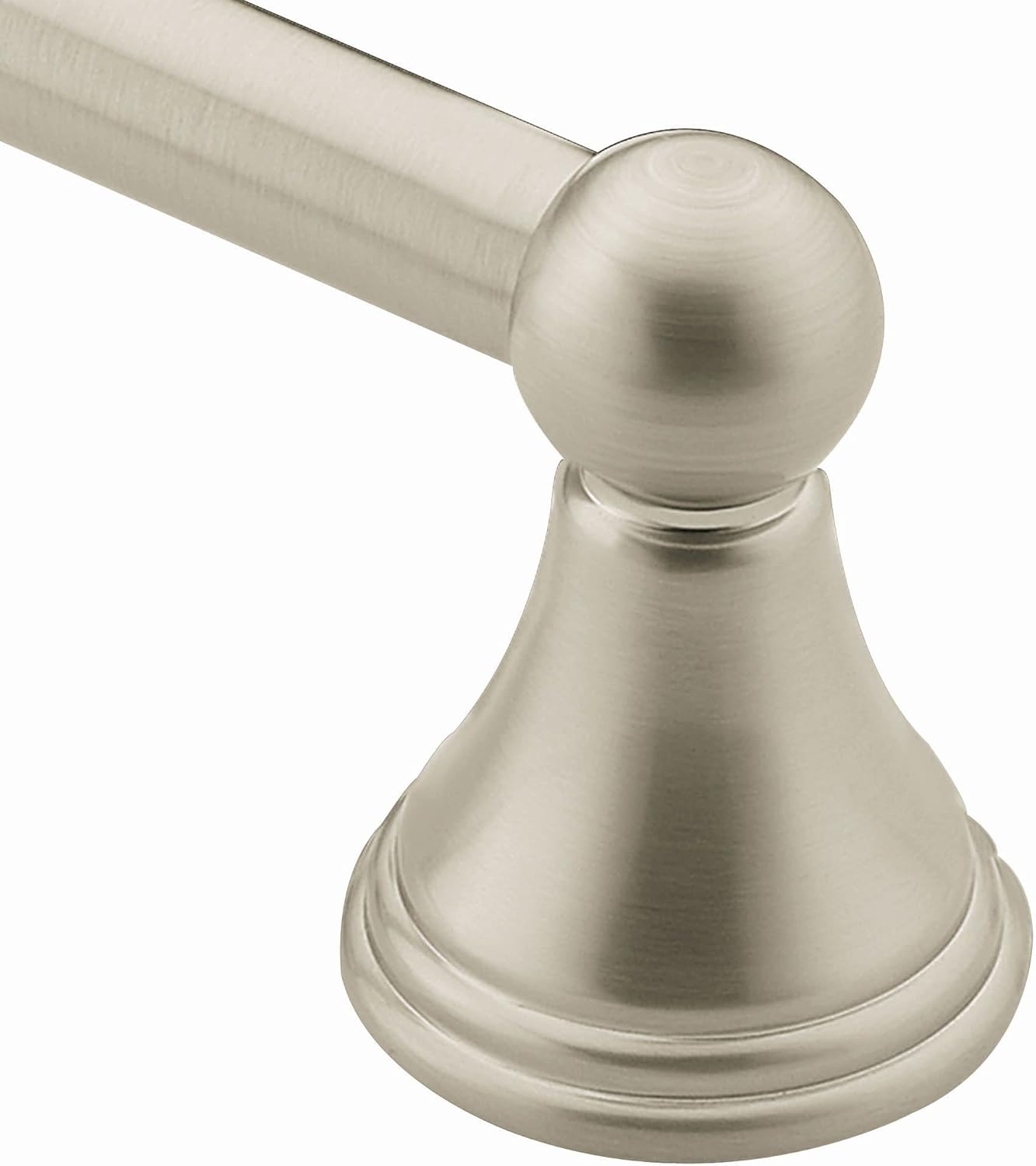 Moen Preston Collection Brushed Nickel 24-Inch Bathroom Single Towel Bar, Wall Mounted Hand or Body Towel Rack, DN8424BN