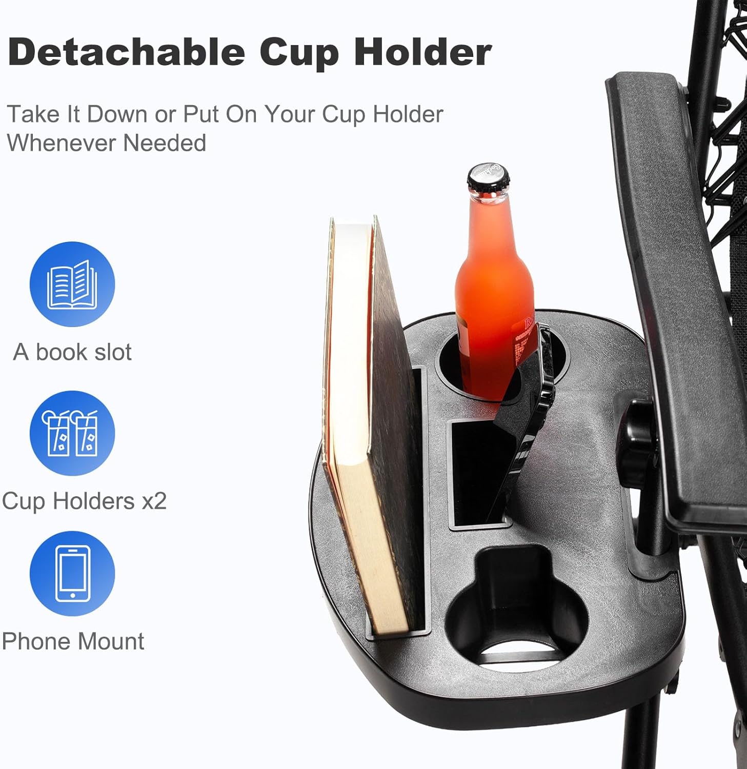 Each chair comes equipped with a convenient pillow for added comfort and a built-in cup holder for keeping your favorite beverage within reach. Whether you’re soaking up the sun by the pool or enjoying a peaceful afternoon in your backyard, these black patio chairs are the perfect choice for leisurely lounging.