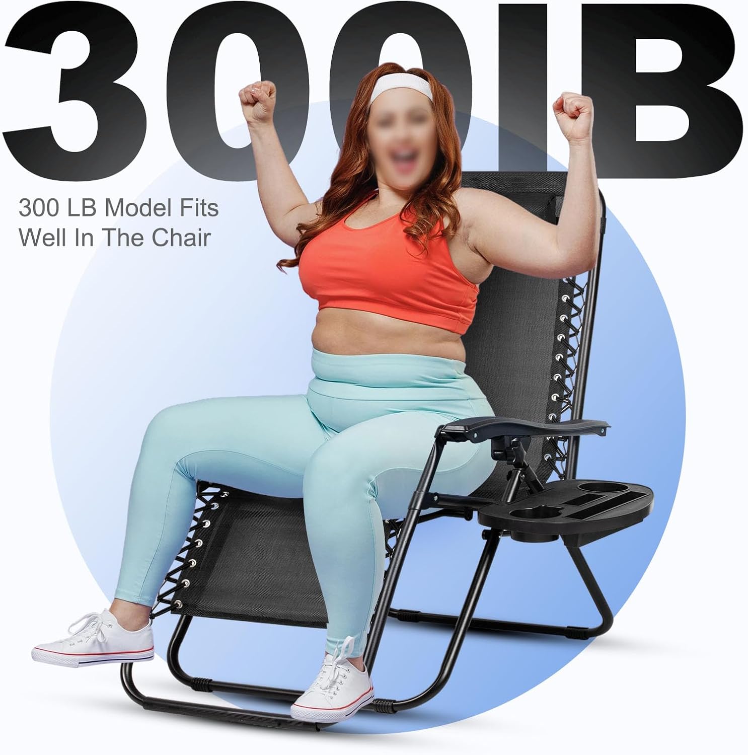 Nazhura Set of 2 Relaxing Recliners Patio Chairs Adjustable Steel Mesh Zero Gravity Lounge Chair Beach Chairs with Pillow and Cup Holder Black