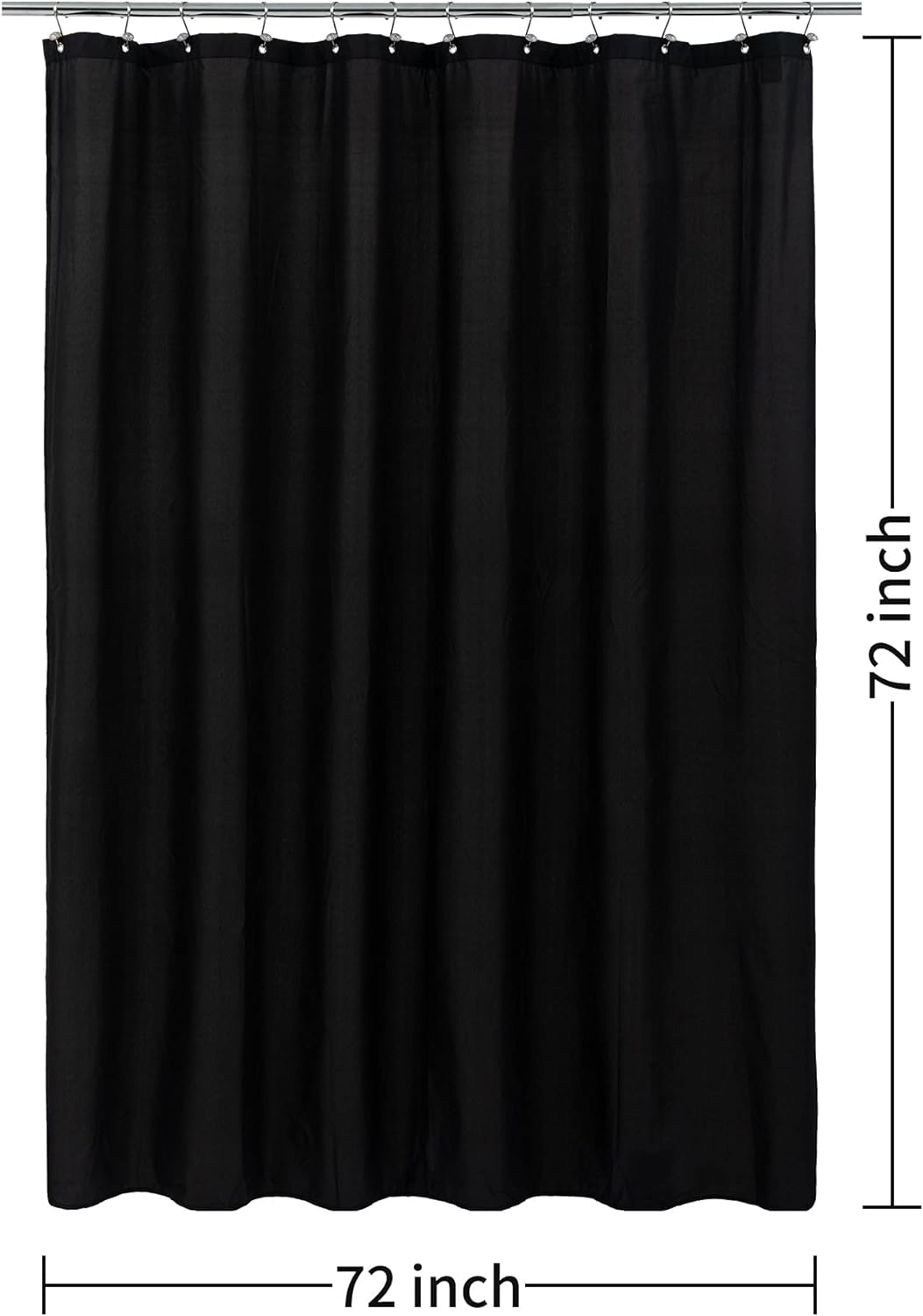 Waterproof Fabric Shower Curtain Soft Hotel Quality – 3 Magnets at Bottom, Premium Black Shower Curtain Liner for Bathroom, Light-Weight Cloth & Washable – 72×72, Black